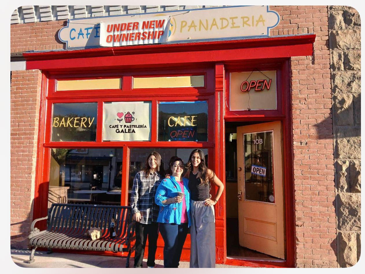 GALEA Lorena Velasco Lopez y sus hijas en el corte de listón de su negocio, Cafe y Pasteleria GALEA. Foto de cortesía